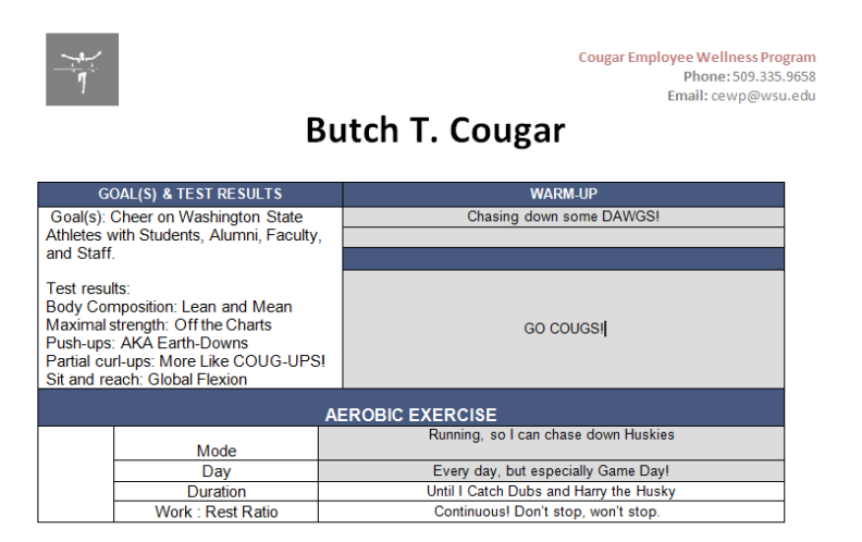 What does an exercise plan look like? It will look similar to Butch’s exercise plan below.